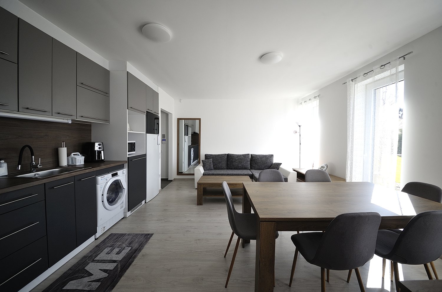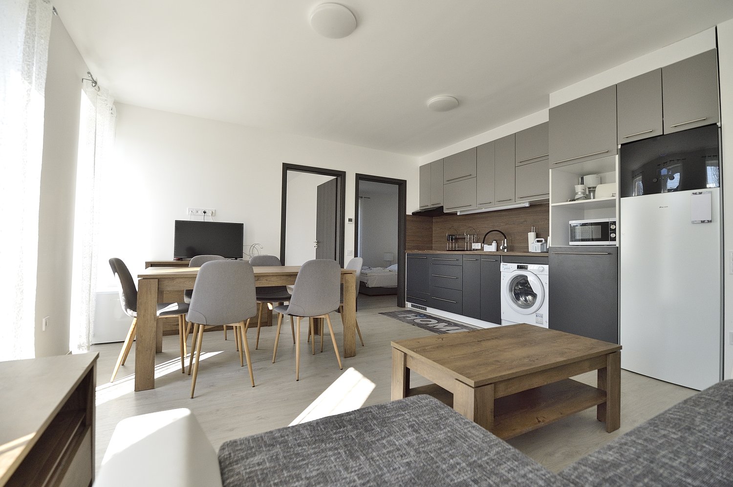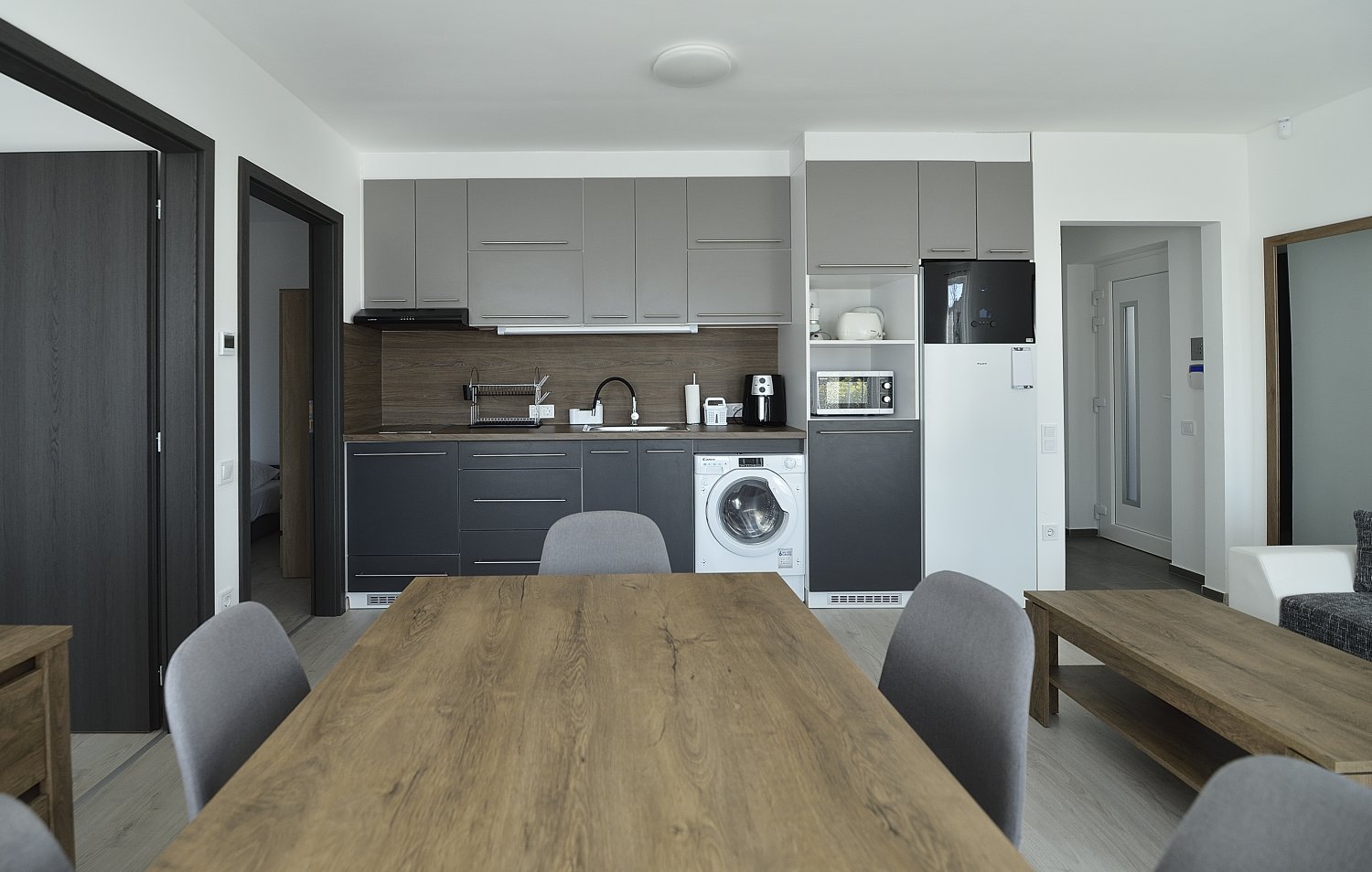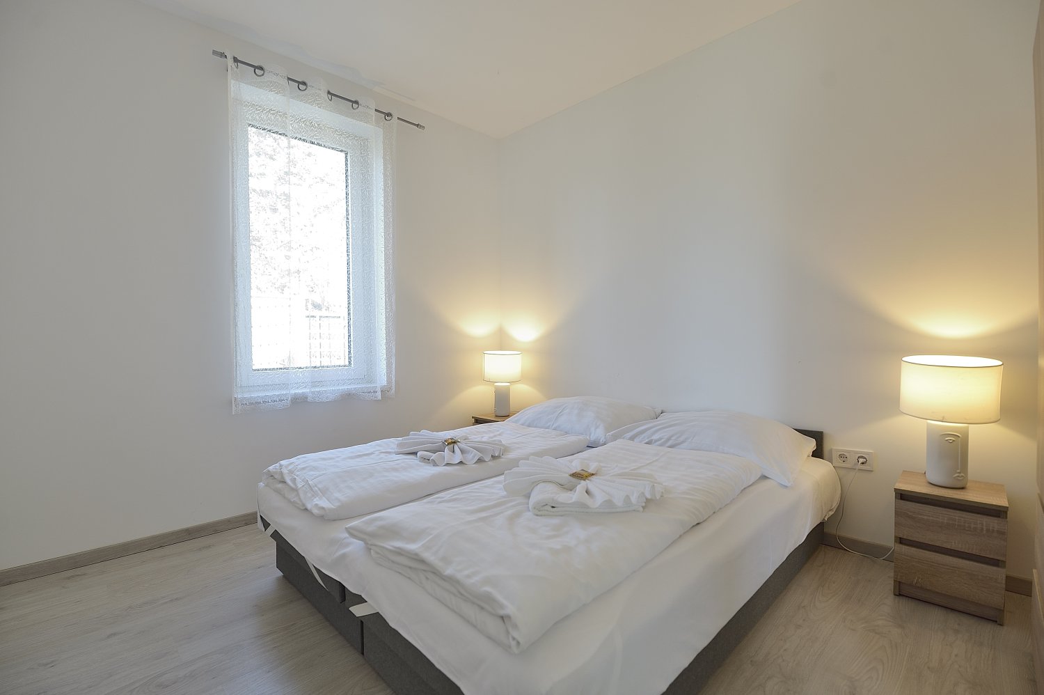 A 2 hálószobával, amerikai konyhás nappalival rendelkező földszinti lakás akár 6 fő részére nyújt kényelmes kikapcsolódást. Az apartmanhoz 1 db parkolóhely is tartozik.